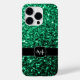 Emerald Green faux glitter sparkles Monogram Case-Mate iPhone Case.