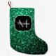Emerald Green faux glitter sparkles Monogram Small Christmas Stocking