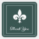 Elegant and simple Wedding thank you sticker featuring a fleur de lis against an emerald green background. This design is a unique choice for a modern wedding. Easy to customise with your wedding details. Click "Customise It" to find more personalisation options.