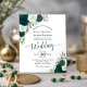 These affordable, budget friendly wedding invitations are the perfect choice for class, style, and beauty on a budget. The elegant design features hand painted watercolor roses in shades of emerald green and sage, with a bevy of eucalyptus leaves and greenery. The typography features fancy script calligraphy, and the back is a deep marbled green colour. Wonderful way to invite your friends and family to share in your joy on your special day without breaking the bank.