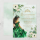 Emerald Green Floral Dress Butterfly Quinceañera Invitation