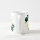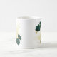 Beautiful coffee mug featuring emerald green flowers and gold leaves.
