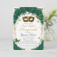 Emerald Green Floral Gold Sweet Sixteen Masquerade Invitation