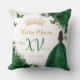 Personalise this elegant emerald green floral Quinceañera / Sweet 16 birthday throw pillow easily and quickly. Simply click the Edit Using Design Tools button to further edit the texts, change fonts and fonts colours. Featuring vibrant watercolor emerald green flowers, a girl dressed in a lovely emerald green ball gown and a gold princess crown. This makes a perfect keepsake for quinceanera, sweet sixteen, 18th birthday, debutante ball and many more occasions! Matching items available in store. (c) Somerset Fine Paperie