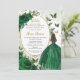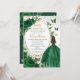 Emerald Green Floral Princess Gold Quinceañera Invitation