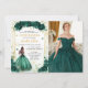 Emerald Green Floral Princess Quinceañera Photo Invitation