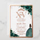 This luxe Quinceañera real rose gold foil invitation features vibrant emerald green roses floral, a girl in a lovely emerald green dress and elegant rose gold accents. Personalise it with your details easily and quickly, simply press the Edit Using Design Tool button to further re-arrange and format the style and placement of the text. Explore coordinating items available in-store to create a stylish and cohesive celebration! (c) The Happy Cat Studio