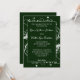 Set the tone for a timeless celebration with this Emerald Green Flourish Wedding Invitation. Featuring graceful white flourishes, delicate white botanical elements, and flowing white leaves, this design evokes a soft, feminine aesthetic perfect for romantic weddings. Elegant script pairs beautifully with modern typography to highlight the names of the bride and groom and essential wedding details. Ideal for garden-inspired or classic themes, this invitation brings effortless sophistication to your special day.