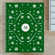 A Recipe Notebook with white Flower Power pattern, a dark green monogram letter and floral ornaments in Emerald Green tones for your homemade preparations! Change inside paper for a school or office notebook!