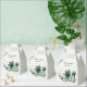 Unique wedding favour box featuring romantic emerald green and soft green flowers and green leaves botanical geometric frame.