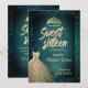 Emerald Green glitter Gold dress tiara Sweet 16 Invitation