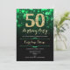 50th birthday party invitation. Elegant emerald green and black design with faux glitter gold. Features stylish diamonds, bokeh lights and script font. Men or women bday invite. Perfect for a stylish adult birthday party. Personalise with your own details. Message me if you need further customisation. Printed Zazzle invitations or instant download digital printable template.