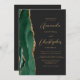 Emerald Green Gold Agate Dark QR Code Wedding Invitation