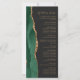 The left-hand edge of this elegant modern wedding program features an emerald green watercolor agate border trimmed with faux gold glitter. The customisable text combines gold-coloured calligraphy script and sans serif fonts on a dark background.
