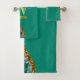 Emerald Green & Gold Agate Geode Glitter Monogram Bath Towel Set