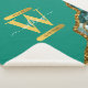 Emerald Green & Gold Agate Geode Glitter Monogram Sherpa Blanket