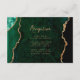 Emerald Green Gold Agate Script Wedding Reception Enclosure Card