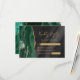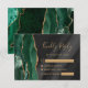 Emerald Green Gold Black Watercolor Agate Wedding RSVP Card