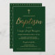 Emerald Green Gold Cross Custom Boy Baptism Invitation