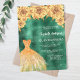 Emerald green gold dress floral Quinceanera luxury Invitation