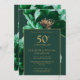 Emerald Green Gold Floral Modern 50th Anniversary Invitation