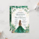 Emerald Green Gold Floral Photo Quinceanera Invitation