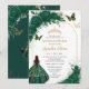 Emerald Green Gold Floral Princess Quinceañera Invitation