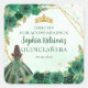 Emerald Green Gold Floral Princess Tiara Thank You Square Sticker