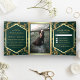 Emerald Green Gold Flourish Swirl Wedding Photo Tri-Fold Invitation