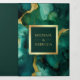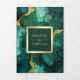 Emerald Green Gold Fluid Ink QR Code Wedding Tri-Fold Invitation