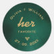 Emerald Green & Gold Her Favourite His Favourite Favour Classic Round Sticker | Personalised Luxe Wedding Treat Seal
