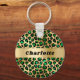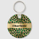 Emerald green gold leopard cheetah pattern name key ring