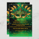 Emerald Green Gold Masks Masquerade Birthday Party Invitation