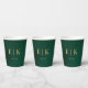 Emerald Green & Gold Monogram Wedding Paper Cups | Elegant Luxe Custom Initial Party Supplies