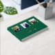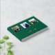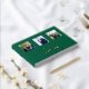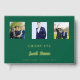 An emerald green background, gold foil text.  Personalise and add 3 photos, your name, class of, and school name.