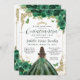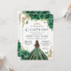 Emerald Green Gold Princess Floral Quinceañera Invitation