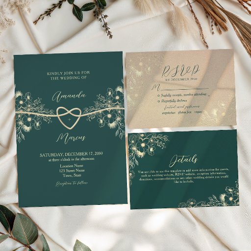 Emerald Green Gold Floral Wedding Invitation SuiteDesigned by Yana Bor