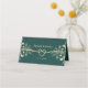 Elegant emerald green and gold rope heart wedding place card featuring delicate floral accents and modern script typography. Perfect for weddings, receptions, or formal events, this folded tent card design helps guests find their seats in style. Coordinates beautifully with the full emerald green and gold wedding invitation suite.