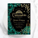 Emerald Green Gold Roses Butterflies Quinceanera Invitation