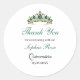 Add a touch of royal elegance to your celebration with this Emerald Green Gold Tiara Quinceañera Sticker. Featuring a majestic gold crown adorned with emerald jewels and chic script lettering, these round stickers are the perfect way to seal your invitations or decorate party favors. The vibrant green and gold palette creates a sophisticated look that beautifully complements a 15th birthday theme.