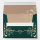 Stylish emerald green and gold floral wedding envelope featuring elegant botanical accents and a romantic heart motif. Designed to match the emerald green and gold wedding invitation suite, this envelope adds a luxurious finishing touch to your wedding stationery set.