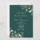 Elegant, rustic, vintage, emerald green wedding invitation with gold gilded floral lace, simple calligraphy script and monogram back.