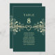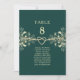 Elegant emerald green and gold seating chart card with floral accents and a romantic rope heart design. This double-sided table card helps guests easily find their seats at your reception. Perfect for formal, classic, or modern weddings in any season, especially fall and winter. Personalise with table numbers and guest names to match your wedding theme. Coordinates beautifully with matching invitations, menus, programs, and stationery from the emerald and gold wedding collection.
