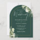Emerald Green Greenery Gold Arch Monogram Wedding Invitation