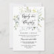 Please note: The elegant beautiful typography wording phrases of "happily ever after party" and "please join us for a reception to celebrate" on the FRONT of the invitation and "kindly respond" on the BACK of the invitation, along with the watercolor greenery foliage eucalyptus leaves arrangements and other graphic artwork elements like the lines and rectangle boxes cannot be edited, changed, moved, or deleted. They are fixed.
