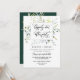 This happily ever after party wedding elopement reception party invitation features an elegant modern minimalist style with watercolor greenery foliage leaves frame arrangements and beautiful calligraphy and clean and serif typography fonts on an emerald green background, which is a beautiful way to inform your family and friends that you're married and it's now time to party! The simplicity of this design adds a touch of elegance to your wedding announcement. It works well with many wedding themes and definitely a great addition to your wedding. Just customise the names and wording in a few easy steps and personalise the invitation card with your photo of the happy couple and party information and QR Code with yours to give your invitation a nice personal touch.
