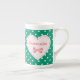A cute emerald green polka dot pattern with a heart shaped patch stitched in pink and embellished with a pretty in pink bow. Personalise by adding your name to this trendy colour of the year. Perfect for the stylish teen girl!