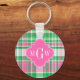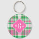 Emerald Green Hot Pink Wht Preppy Madras Monogram Key Ring