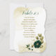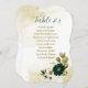 Beautiful emerald green ivory white and gold flowers with gold leaves wedding seating chart card.