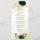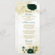 Beautiful emerald green ivory white and gold flowers with pretty leaves wedding menu.